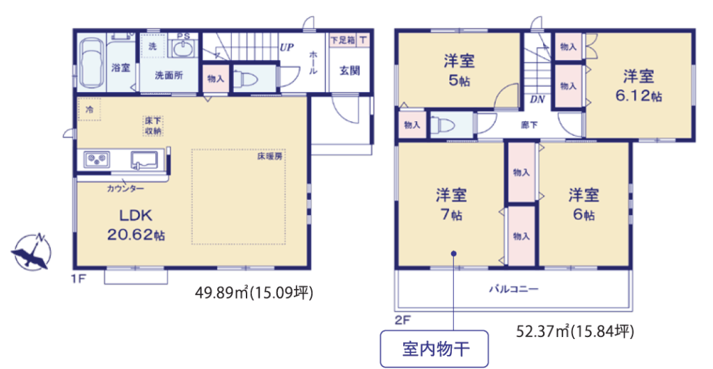 間取内容 | LDK 20.62畳 1階 洋室 5畳 2階 洋室 6.12畳 2階 洋室 6畳 2階 洋室 7畳 2階 | ||