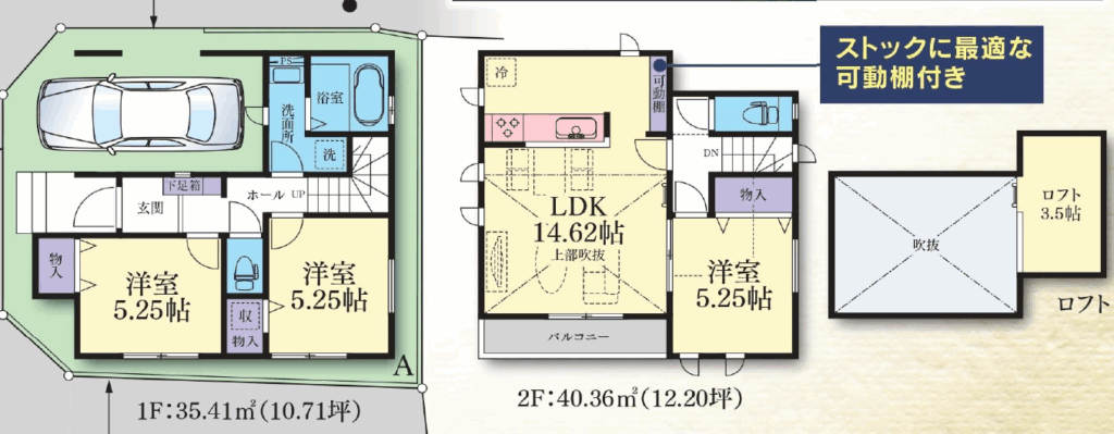 | 間取内容 | 洋室 5.25畳 1階 洋室 5.25畳 1階 LDK 14.62畳 2階 洋室 5.25畳 2階 | ||